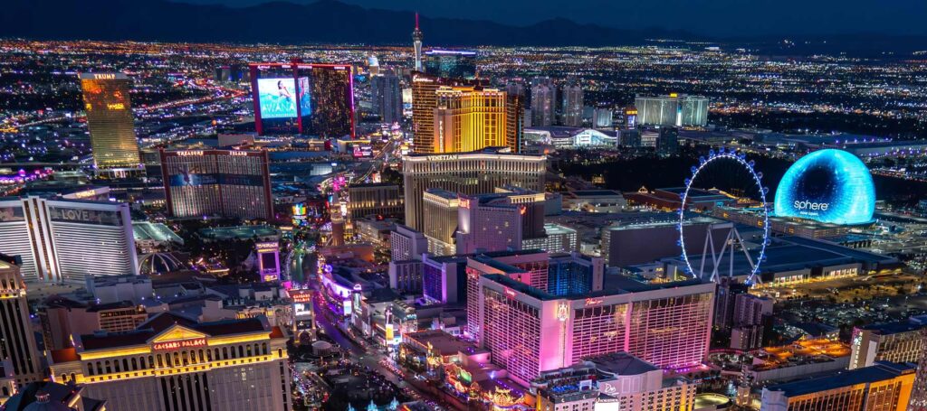 Para el Strip en particular, volar de noche muestra Las Vegas tal como fue pensada para ser vista.